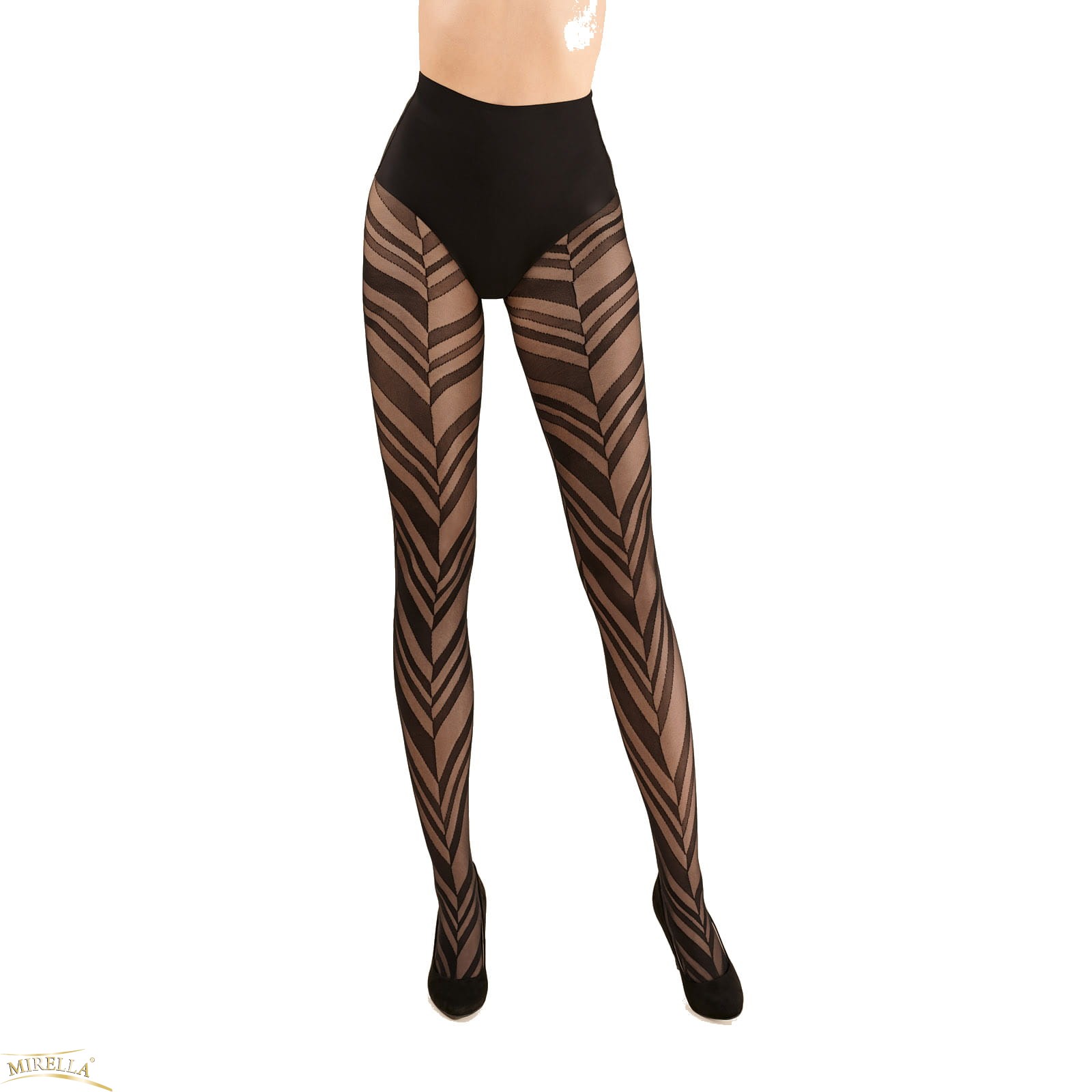 Ekskluzywne fantazyjne rajstopy wykonane z elastycznego włókna podwójnie oplecionego jedwabiem poliamidowym. Bez wydzielonej części majteczkowej z bawełnianym klinem, szyte płaskim szwem.