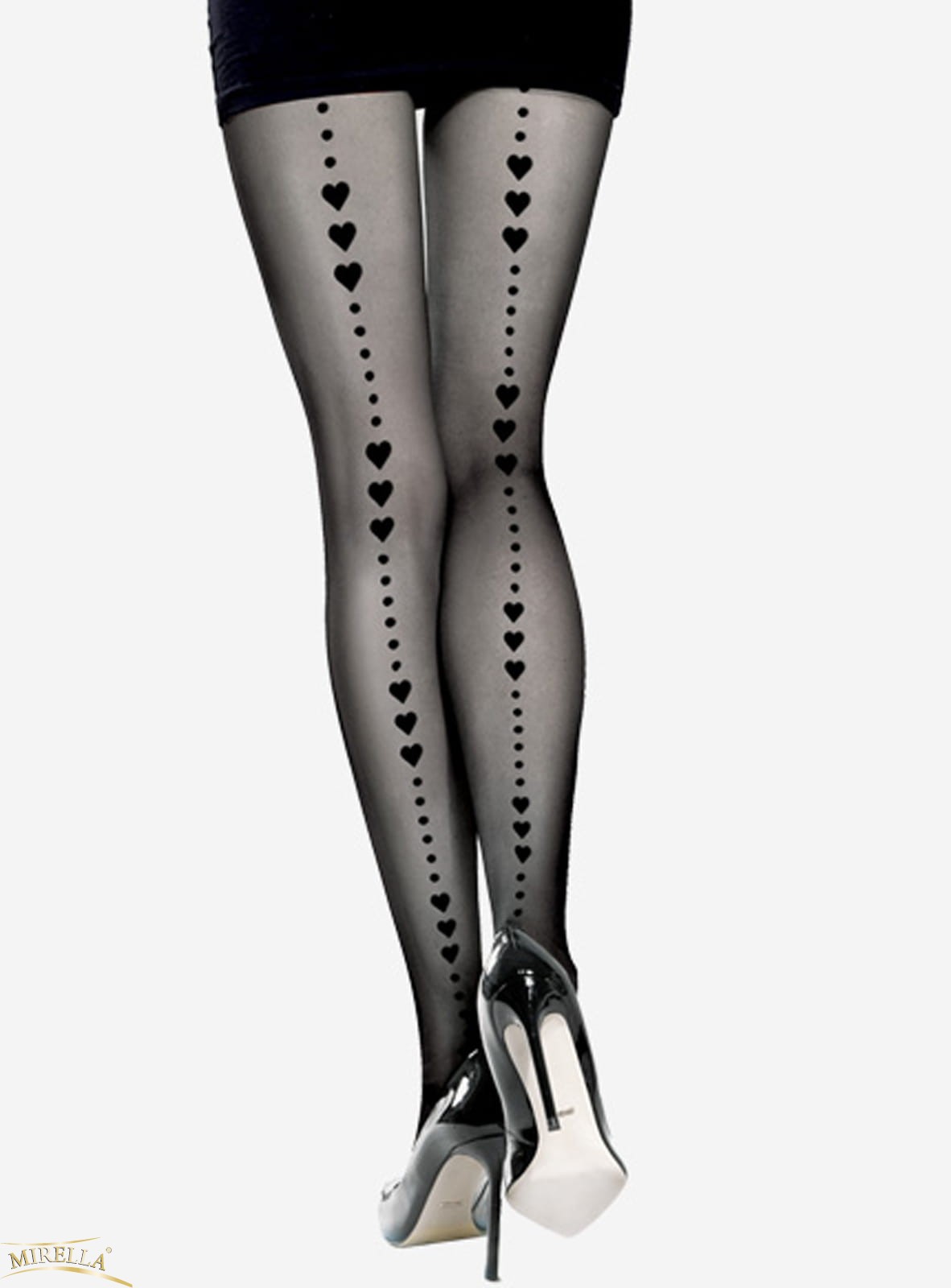 Rajstopy damskie Bergamo wzór w serca z tyłu nogi Lores